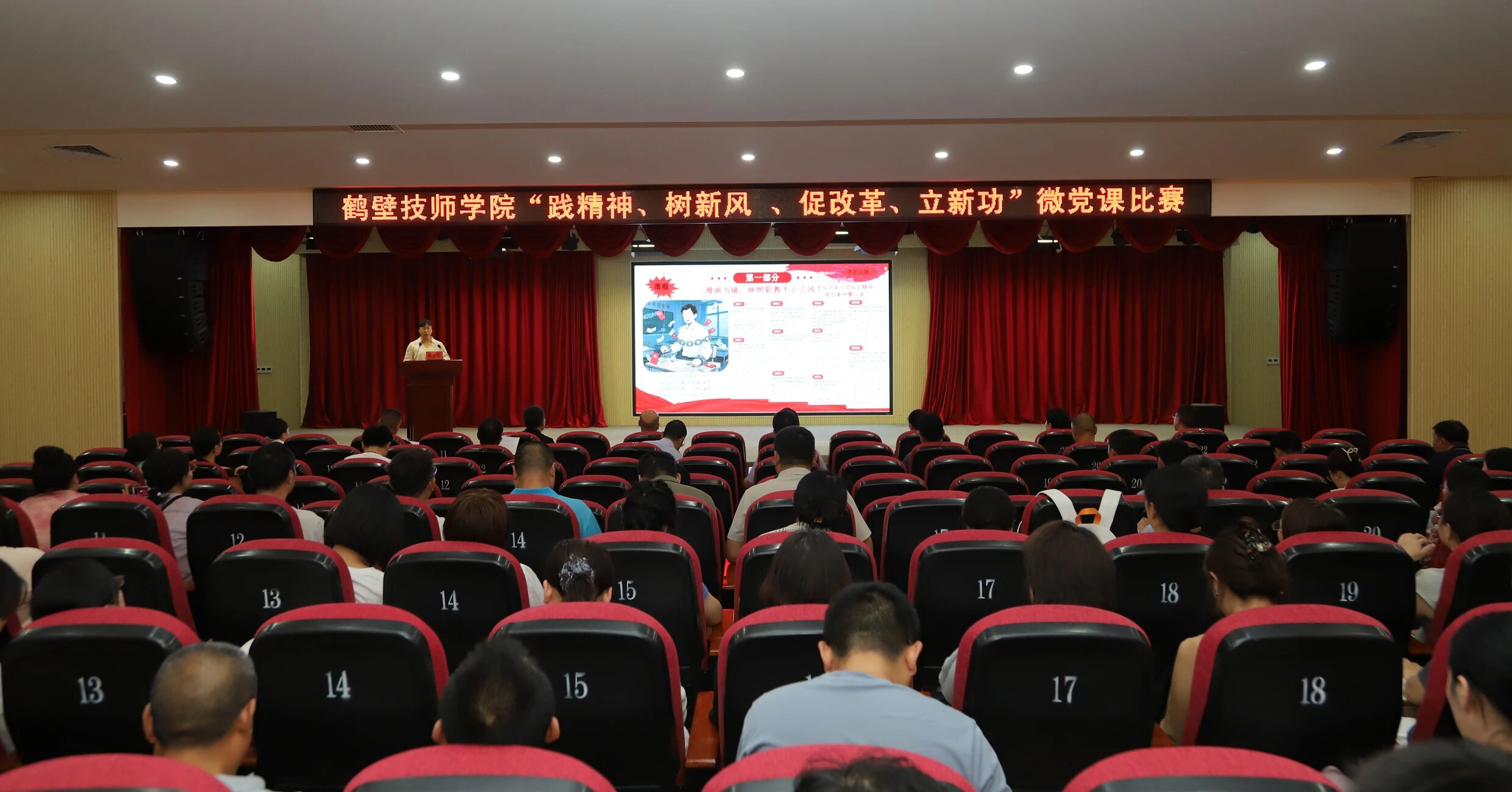 为持续深化能力作风建设,推动深入贯彻中央八项规定精神学习教育走深走实,6月6日下午,学院举办“践精神、树新风、促改革、立新功”微党课比赛。学院领导班子成员及全体教职工参加活动。